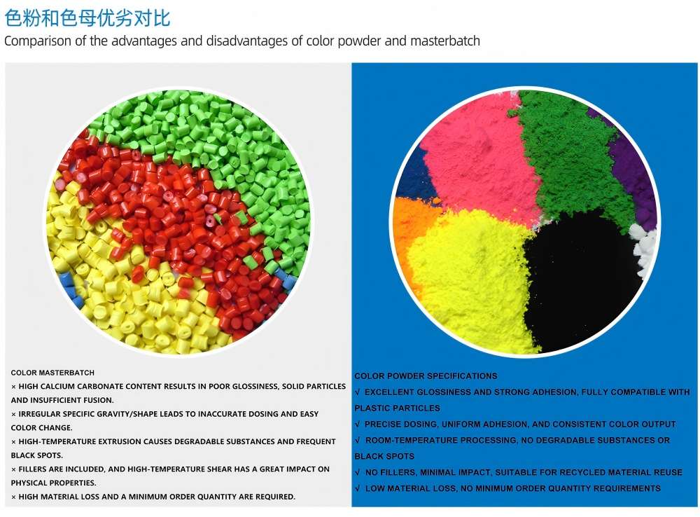 1. Modulare consilium: Dat mobilis colori mutationis 5 minutae. Impleri potest cum additis materiis; Compatibile cum pigmento et masterbatch, multi propositi usum in una machina permittens.